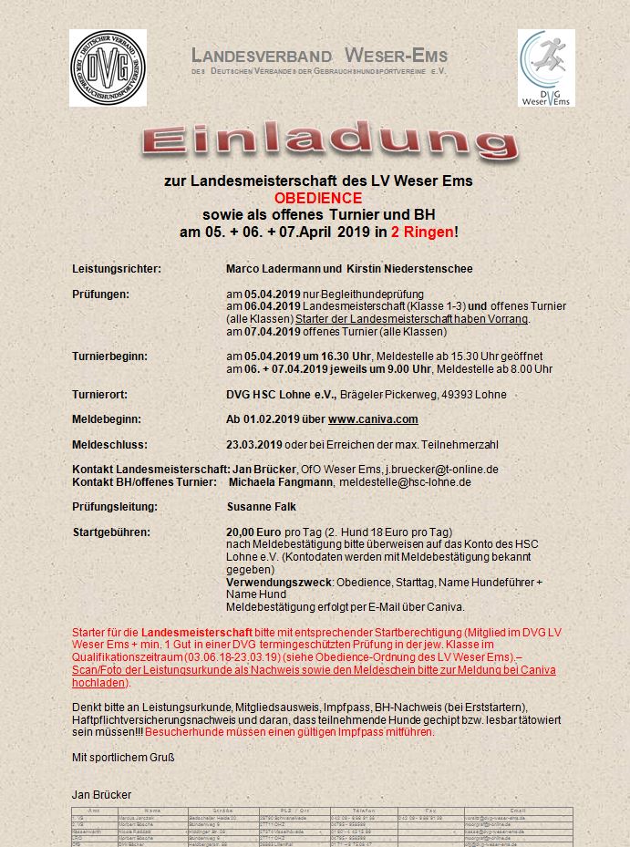 - Organizing club: Hundesportclub Lohne e.V., 9-1-44